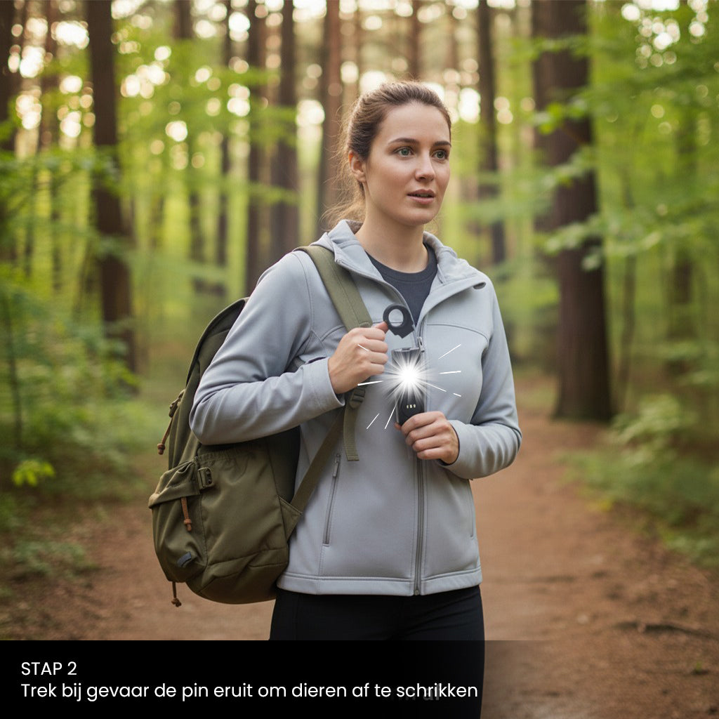 Compact, krachtig en 100% legaal: hetLumo Persoonlijk Alarm combineert een oorverdovend 130 dB alarmsignaal met een felle LED-stroboscooplamp. Perfect voor het afschrikken van wolven of andere wilde dieren tijdens wandelingen, fietstochten of het uitlaten van je hond. Met één simpele handeling trek je direct de aandacht, schrik je af en vergroot je je zichtbaarheid in risicogebieden.